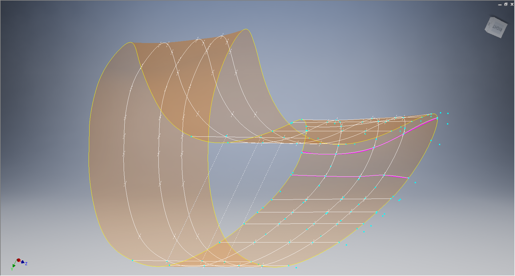 This surface will be converted to a T-Spline surface to facilitate final development.