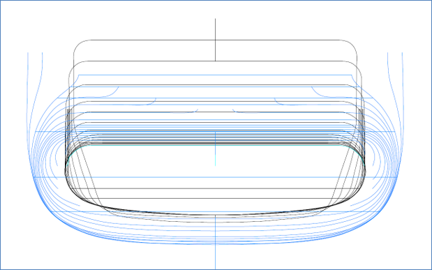 Each point is manually entered into a spreadsheet which lists the Inch dimensions and then converted to Millimeter dimensions. The data has 3 values for the Station location, the Waterline (value along a horizontal axis relative to the ship ctr line at set intervals) and the Buttock line (value along a vertical axis relative to Frame Ref Line ).