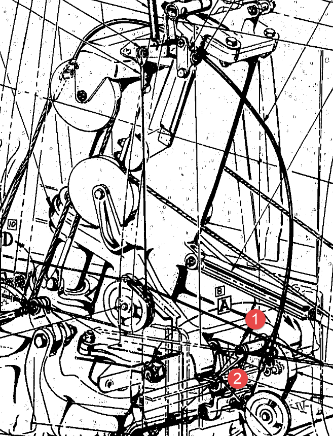 The image on the left shows the cables in this area with 2 key points 1&2 highlighted that are replicated in the 2 archive images. They define the straight section of the cable sleeve that is below and above the cable clips; the locations of which I have incorporated as points in the component sub assembly (last image). This sub assembly does not sit vertically in the assembly, the final position and orientation being determined by other factors which influences the final routing of the cable sleeve.