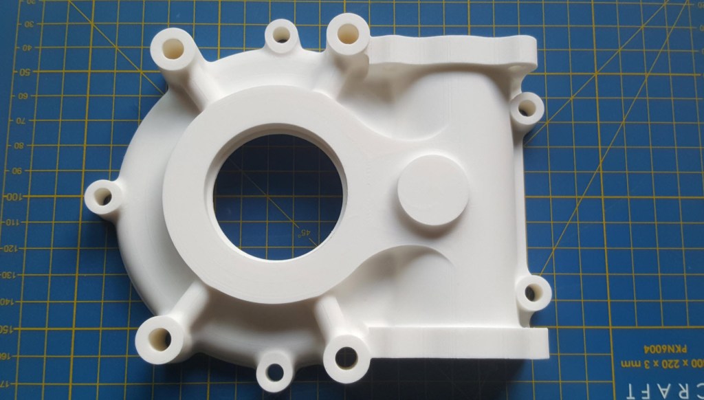 As a basic test to check the viability of the project, I 3D printed the front cover of the secondary gearbox to see how it worked out.