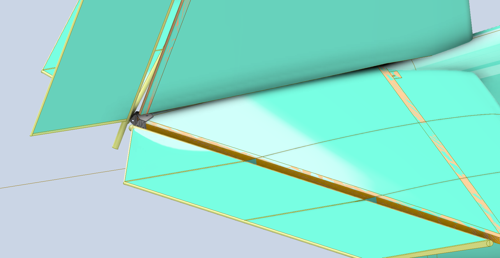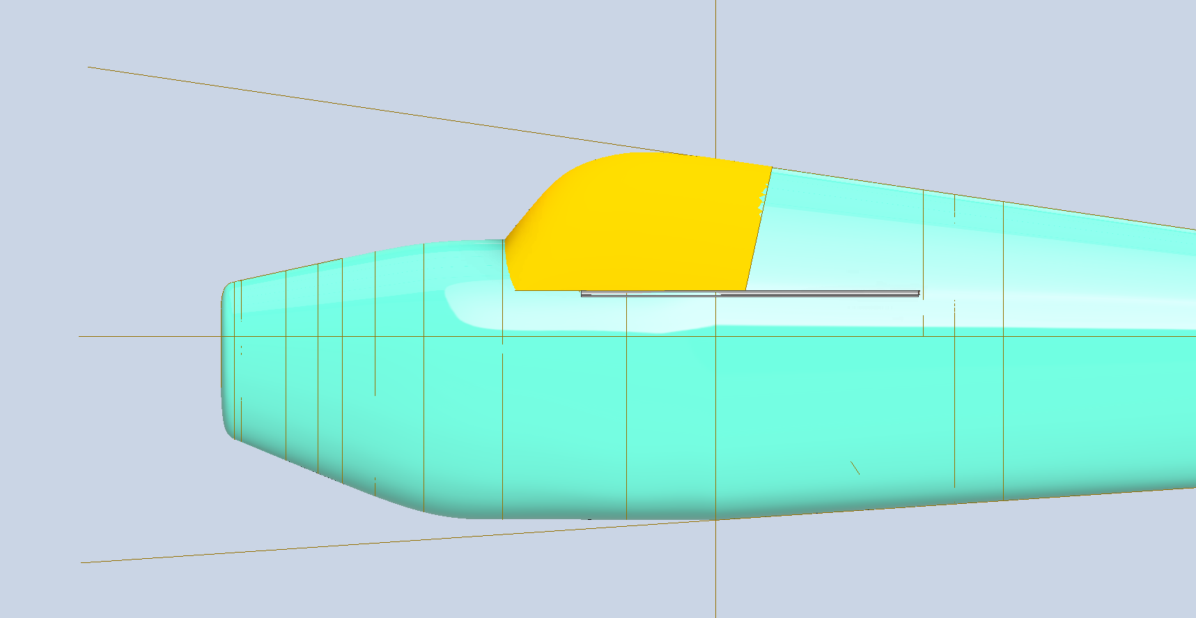I often talk about curvature continuity to ensure a smooth transition throughout assemblies like fuselages; however, just forward of this datum point to the first bulkhead for the forward section, the two fuselage profiles share similar coordinates and therefore the transition will be a horizontal loft and not canted as before. This means there will be a distinct curvature adjustment where the fuselage fore and aft lofts meet at the datum. Essentially, we do not have curvature continuity at this point.