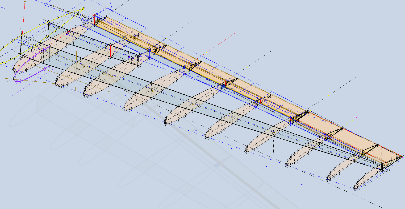 The resulting wing profile is actually very fluid when the wing ribs are correctly aligned. How that is done, well, for now I will keep that to myself. The blog I know from my email inbox helps a lot of people with their projects, but there is not a lot of reciprocal assistance, with very few donations to help me cover my overheads. So I won’t divulge everything, though it is clear in the available model CAD/Ordinate package.