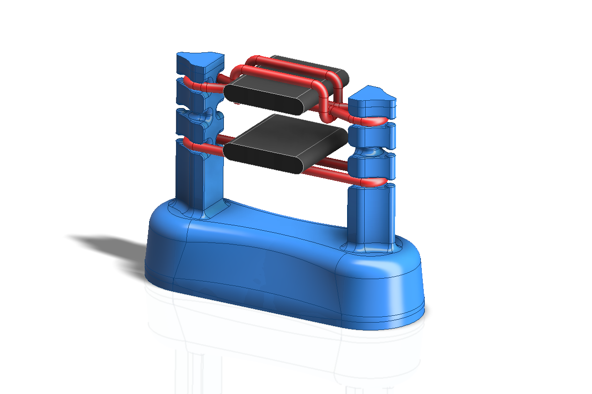 I now have 2 variations on the Cable Elevator design, both of which feature a void in the base for ballast…perhaps something like Liquid Gravity. In both cases, the design also incorporates custom printing supports, as shown in Yellow in the following images. I plan on doing a new blog post on Custom Supports and how they can be used in conjunction with standard slicer supports, so watch out for that.