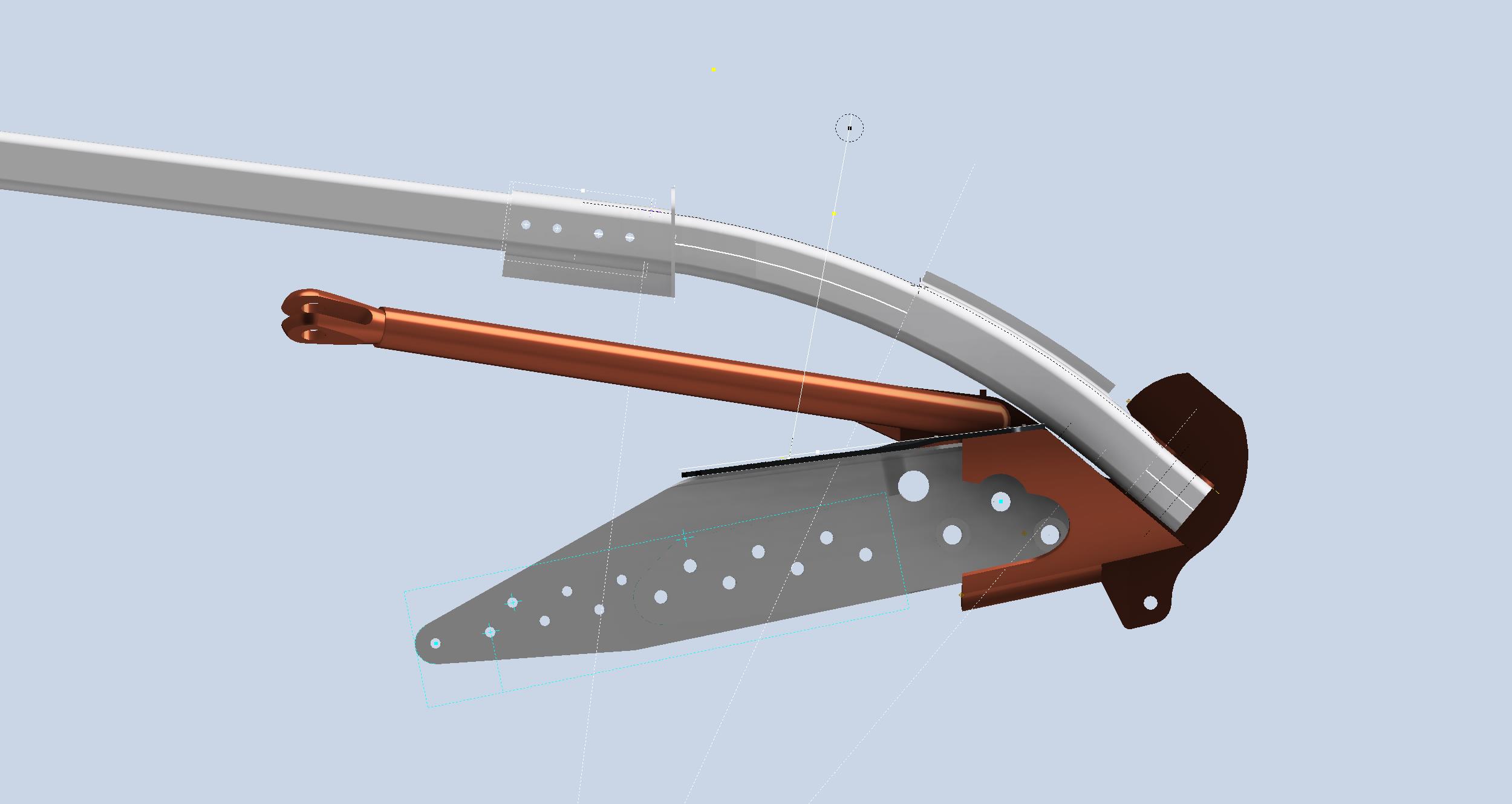 In the image above you can see how the flap assembly does not align exactly with the wing trailing edge. My first impression was that I had made a mistake with the model, so I rebuilt it resulting in the same deviation. So I checked the location of the hinges…they are dimensioned to 4 decimal places of an inch so for all intents and purposes they are exactly located. Further research reveals that there is a return spring on these flaps and I think what is happening is the flap layout is deliberately set out this way so the flap first engages with the wing at the control cylinder end and then the return spring engages closure with the outboard end…hope that makes sense. Grumman has used this type of spring mechanism to engage the closure of wing surfaces elsewhere at the wing folding mechanism.