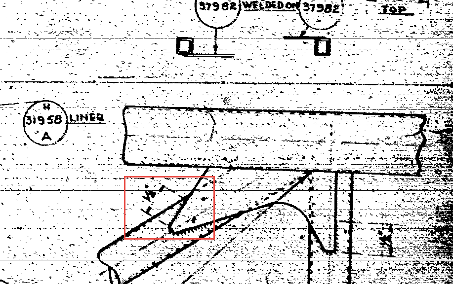Another odd example is the bottom truss end gusset where it splices with the front fuselage truss.