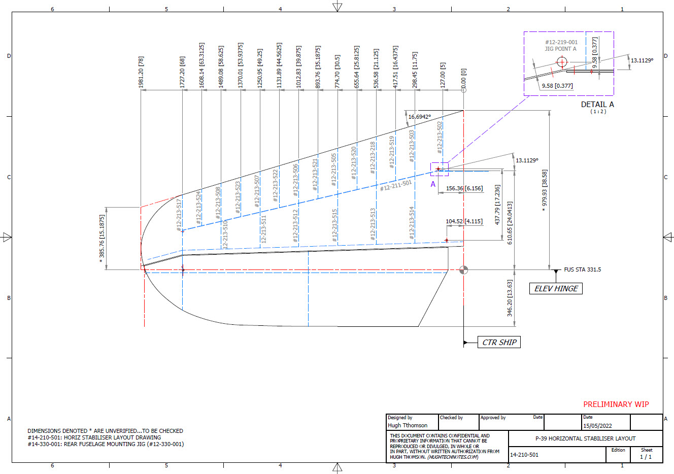 When I started this project the Lockheed drawings seemed to be quite well organised with the provision of a number of what I thought were key ordinate drawings. These appeared to be full of tabulated dimensions and associated formulas. The wing layout and dimensional information were well documented so it was logical to assume this pattern would follow with the other drawings. Unfortunately, this was not to be the case with the Empennage drawings which required a lot more work thus this blog article.