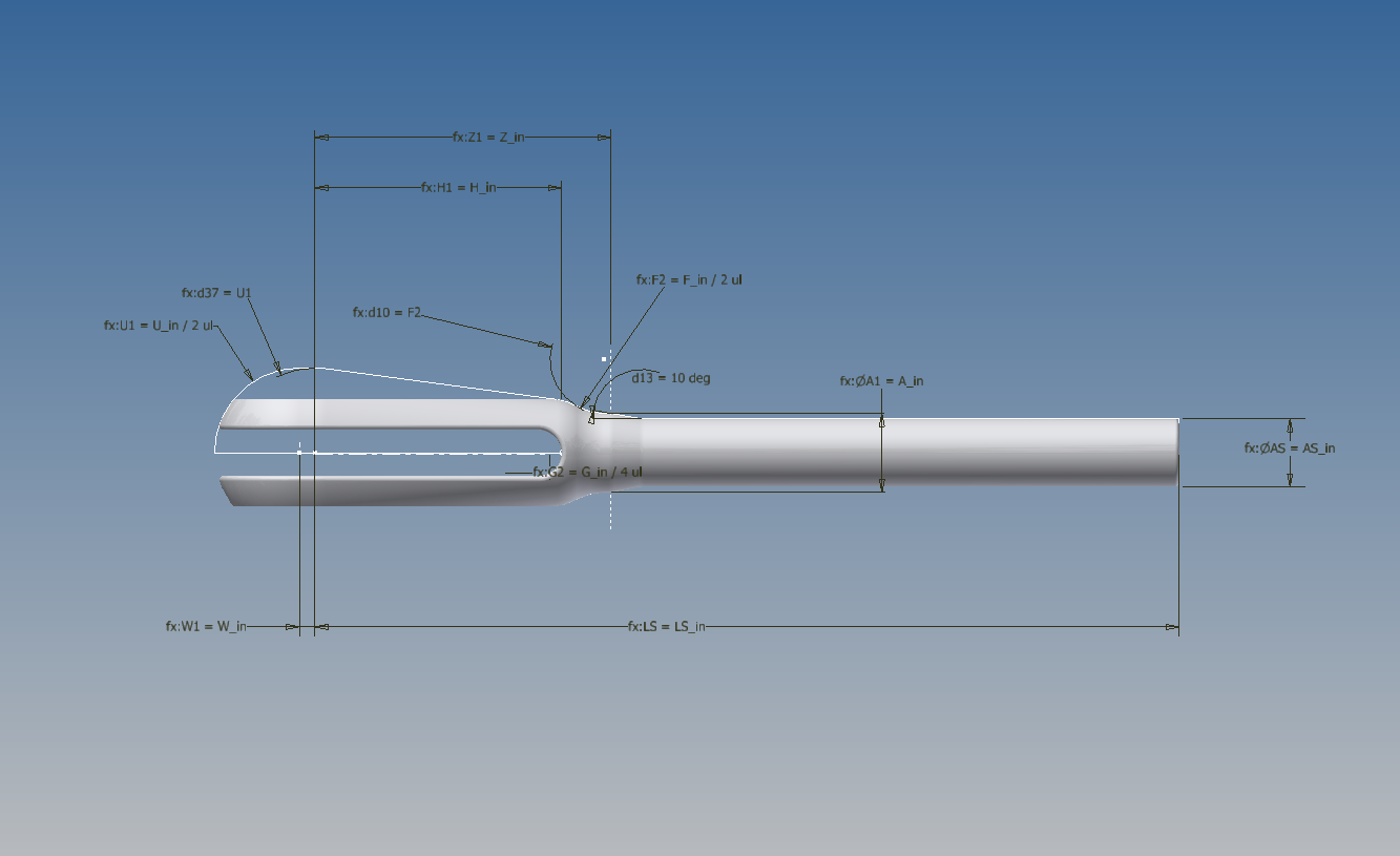 3D iPart (ipt), Spreadsheet. Dimensions to as-Fitted; swaged.