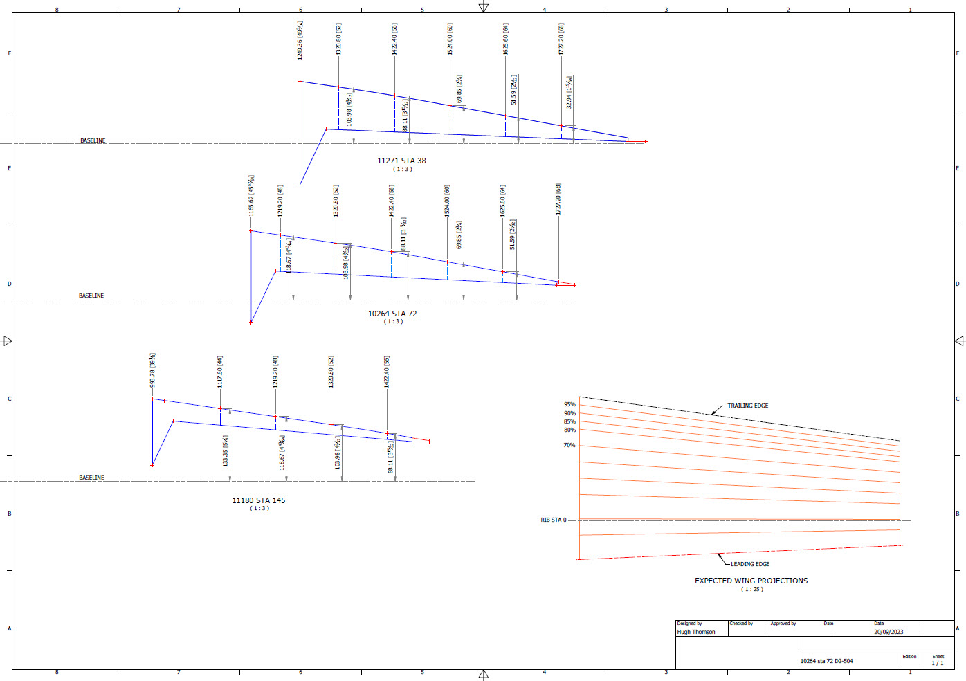 Upon reviewing the CAD drawings on the left and comparing them with the Maintenance Manual diagram, I noticed that the level of the ribs varies by 1/16 of an inch. This discrepancy caused me immediate concern, and I began to wonder where I might have misinterpreted the Grumman drawing data. Therefore, I felt it was necessary to review and verify the information.