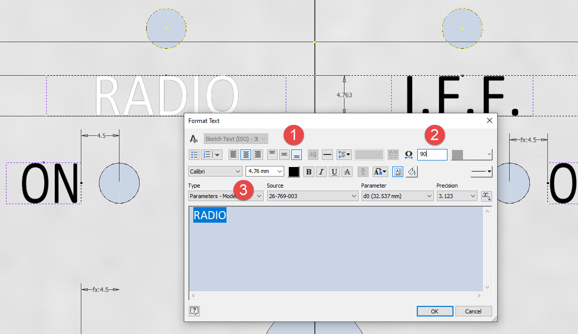 For instrumentation Panels, the location and size of text is very important to ensure clarity. This is usually well documented on the manufacturer’s blueprints so it is essential we get this right. In Inventor for example and I am sure it is equally similar in the many different CAD programs the key is the Text justification…let me show you.